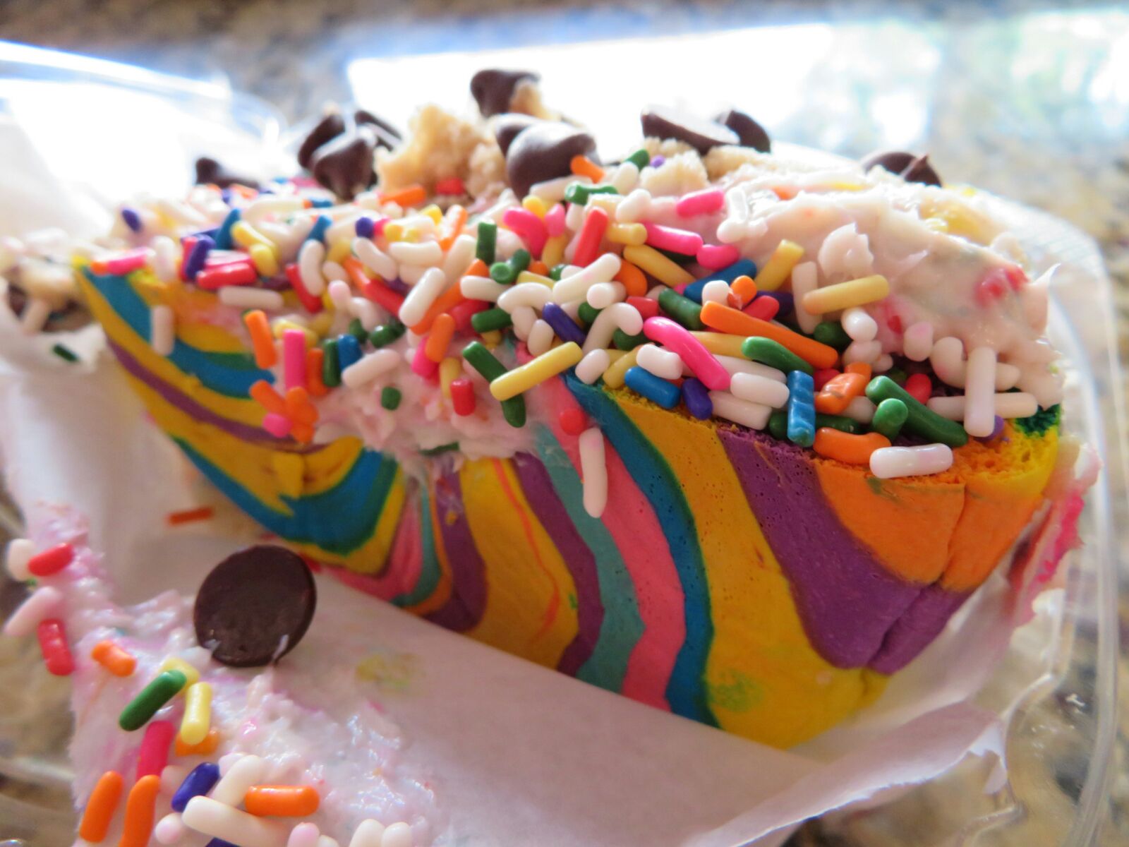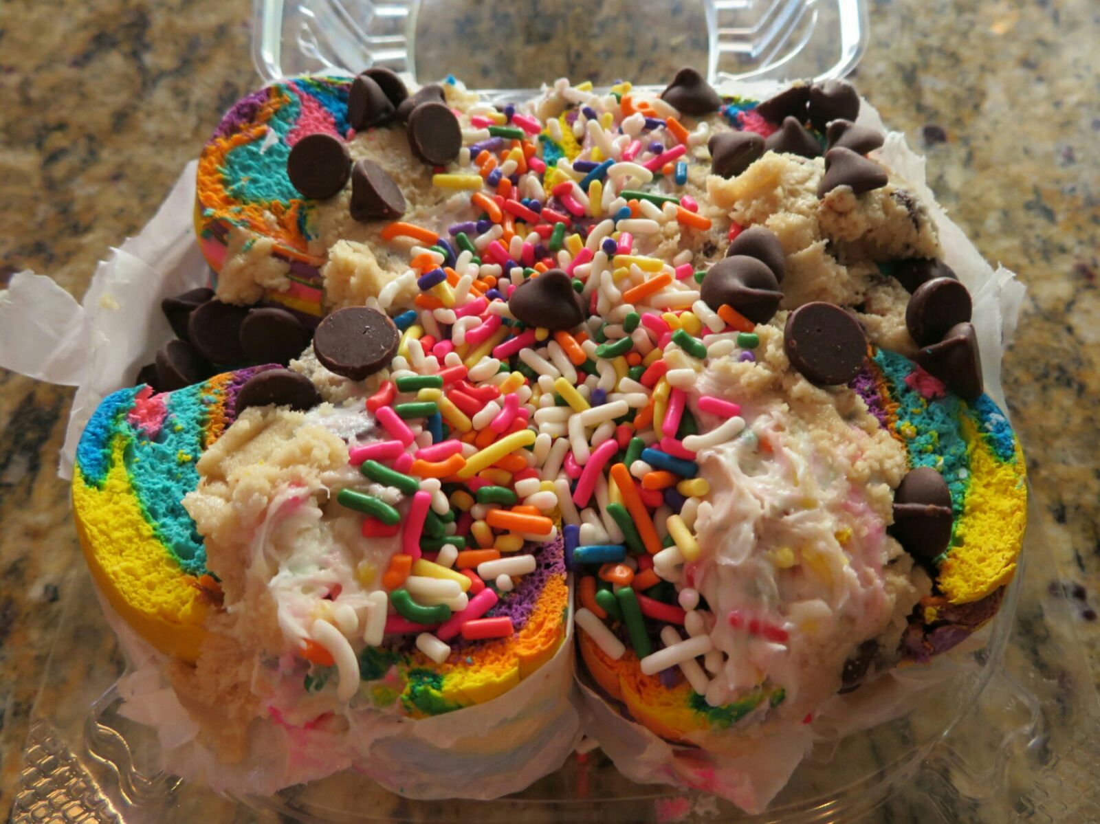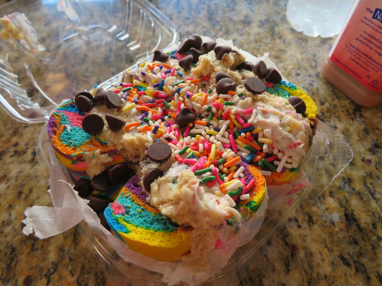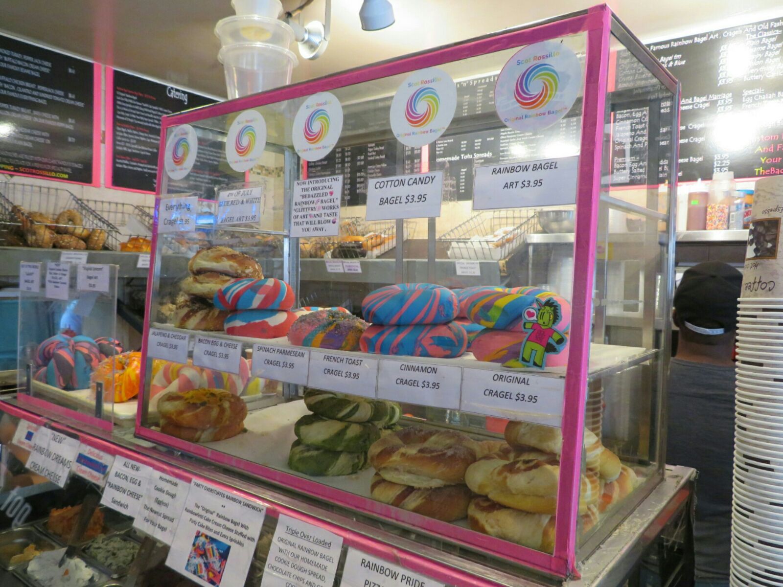 Me suunnattiin metropysäkin lähistölle hakemaan sateenkaaribageleita. Annika bongas joku aika sitten Instagramista hassunhauskan baakelipaikan, josta saa riemunkirjavia ja glitterisiä bageleita. Ihan täydellisiä ruokia kuvattavaksi siis! Sateenkaaribagelit saatiin, ja kuviakin räpsittiin, mutta ei me niitä syötyä kokonaan saatu. Tehtiin se virhe, että otettiin omat bagelit. Yks olis riittäny puoliksi ihan hyvin, koska oli se niin ällömakiaa, ettei sitä voinu enempää syyä. Noo, ei me makuelämyksiä sieltä onneksi haettukaan. Kaks bagelia kahvilla, vesipullolla ja smoothiella tais maksaa parisenkymmentä taalaa.