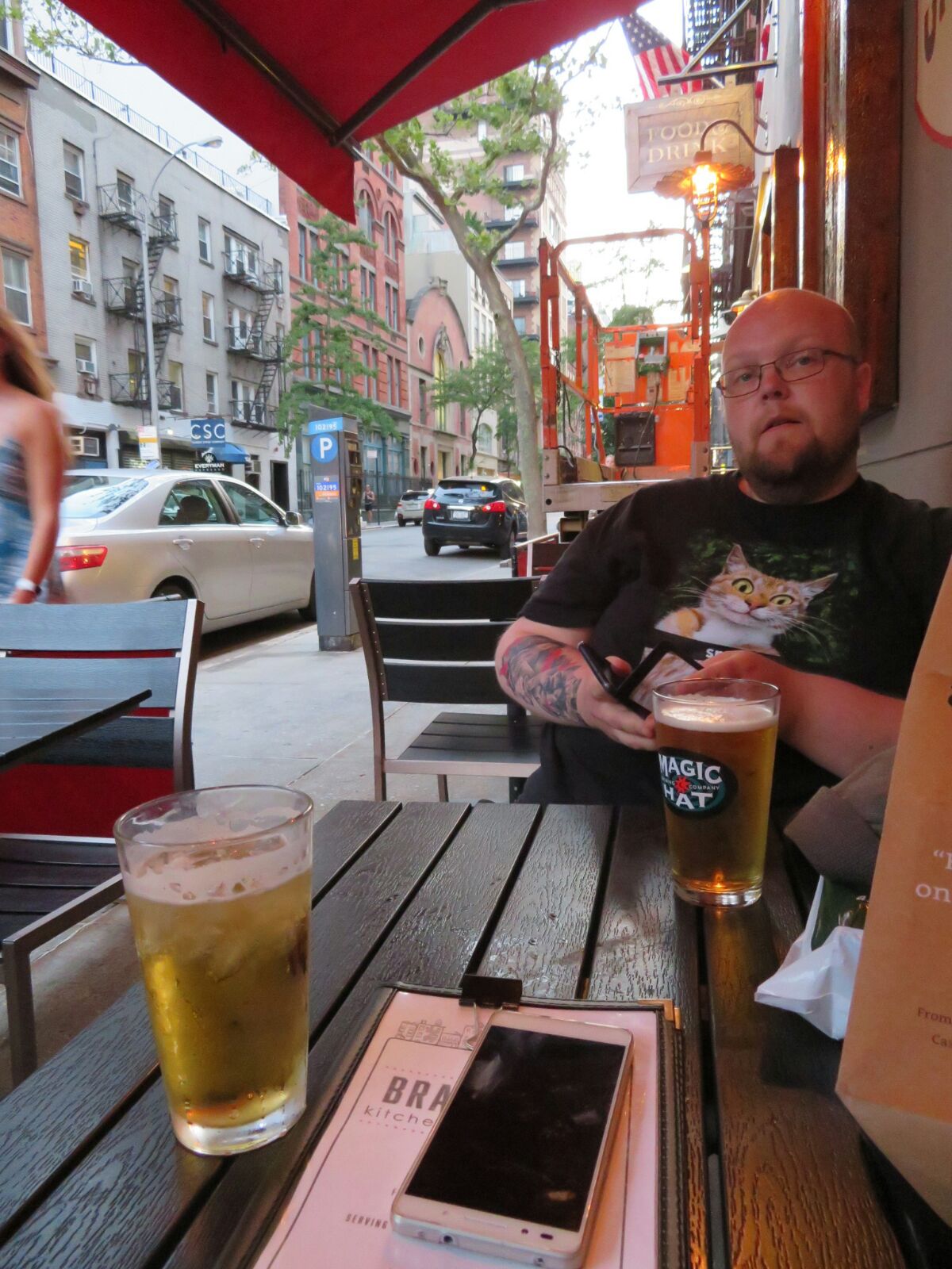 Tämän jälkeen oltiin jo molemmat ihan rättipoikkiväsyneitä, muttei vielä suostuttu luovuttamaan ja palaamaan kämpille, joten mentiin hetkeksi istuskelemaan Central Parkiin. Siellä tehtiin pettämätön suunnitelma, että käydään vielä jossain yhdellä, ja ehkä syömässä. Monen mutkan ja bussipysäkin kautta päädyttiin Brazen Fox ravintolaan, jonka burgerit on kuulemma New Yorkin parhaita. Tästä innostuneena tilattiin lautasellinen nachoja med olut och cider. Hyvvää oli. Päästiin vielä juomaan juomamme ulos patiolle, mikä kruunas kyllä koko homman. Patiot <3
