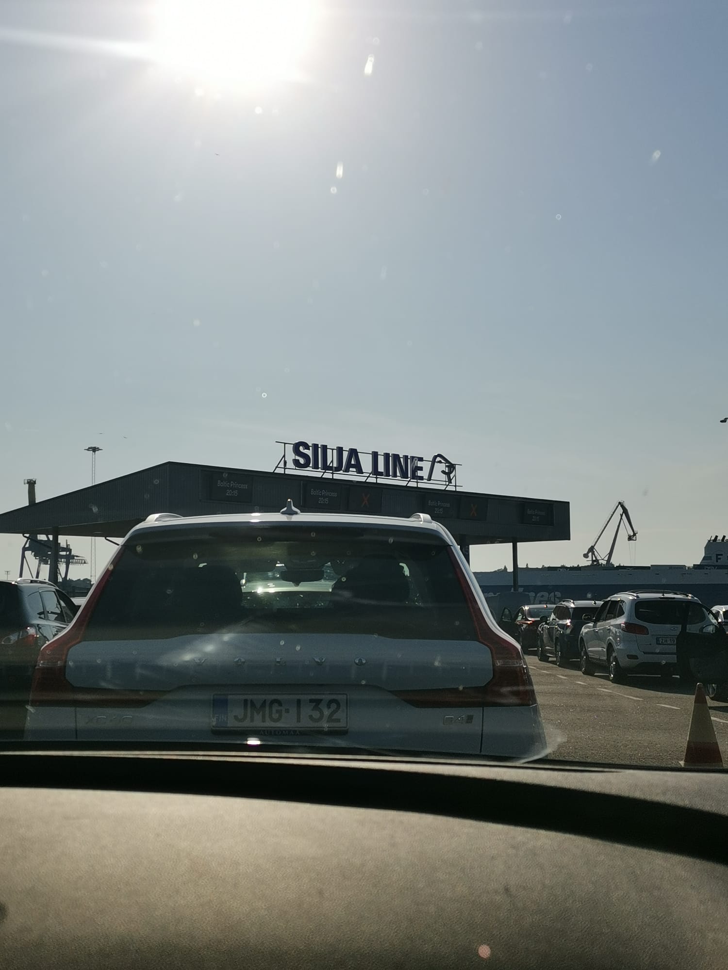 Saavuimme hyvissä ajoin satamaan odottelemaan laivaa, joka oli myöhässä. Nyt kuitenkin olemme tämän meressä lilluvan diskon hellässä hyväilyssä kohti rikkauksien Ruotsia. Jatketaan taas tarinointia huomenna.